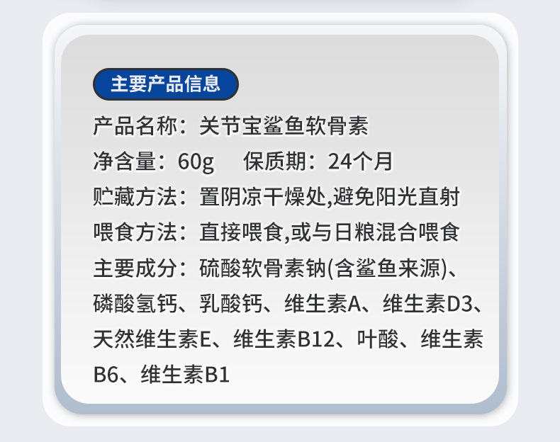 鲨鱼软骨素钙片猫咪狗狗专用关节宝健骨补钙健骨宠物关节强软骨素