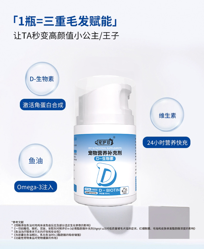 D-生物素宠物告别掉毛科学美毛爆毛猫狗通用防掉毛乳化生物素鱼油