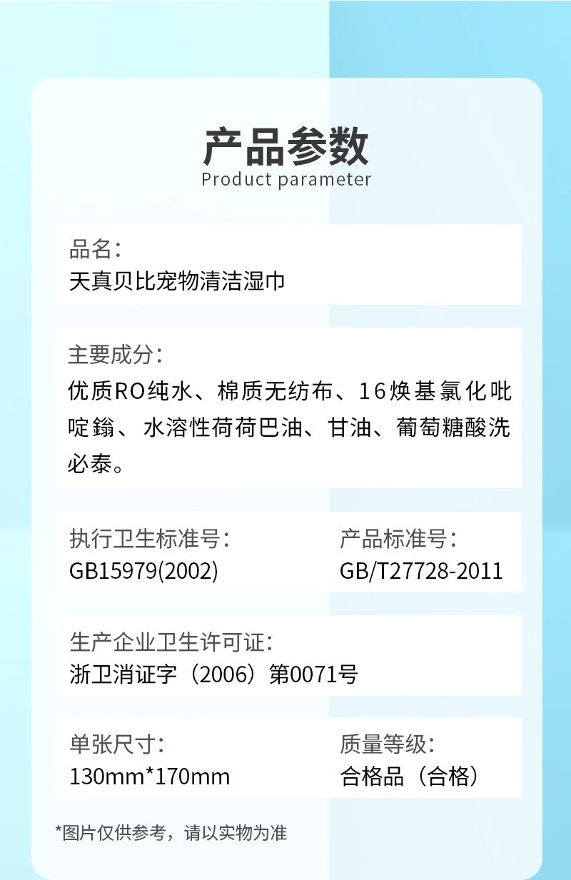 天真贝比宠物湿巾猫狗专用爱宠护理免洗清理眼睛耳朵湿纸巾80抽 1包