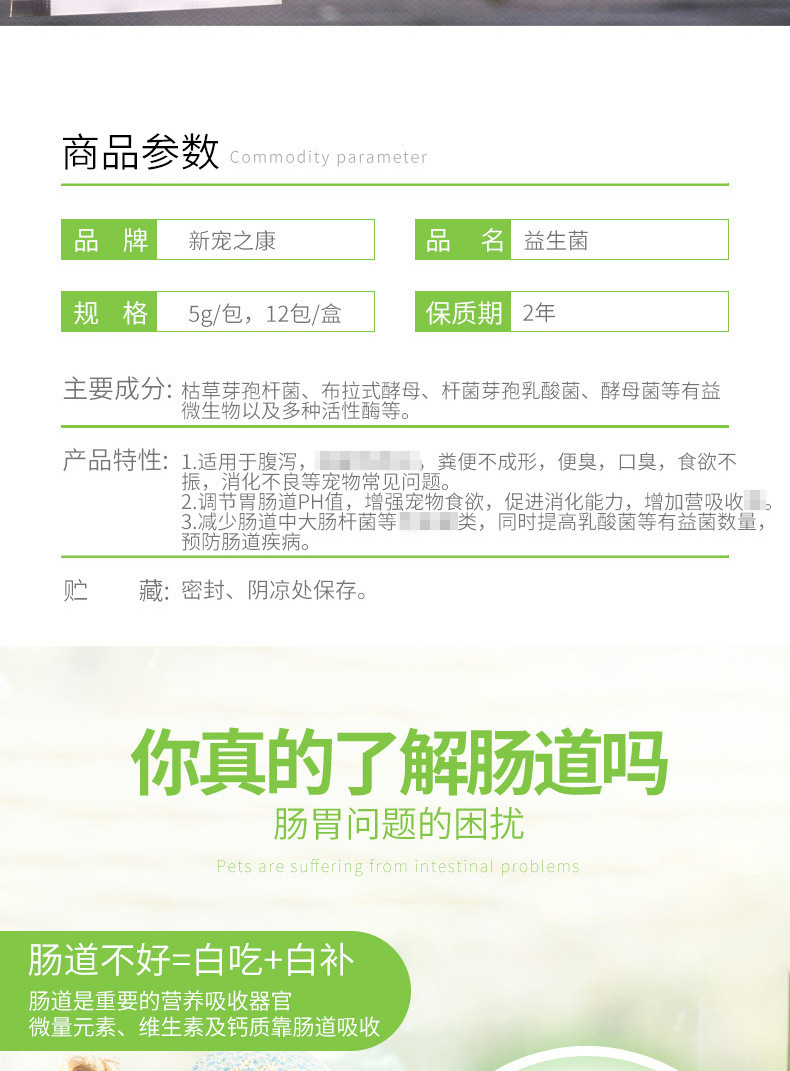 新宠之康宠物益生菌12袋/盒60g狗狗肠胃宝猫咪益生菌营养补充剂 1盒