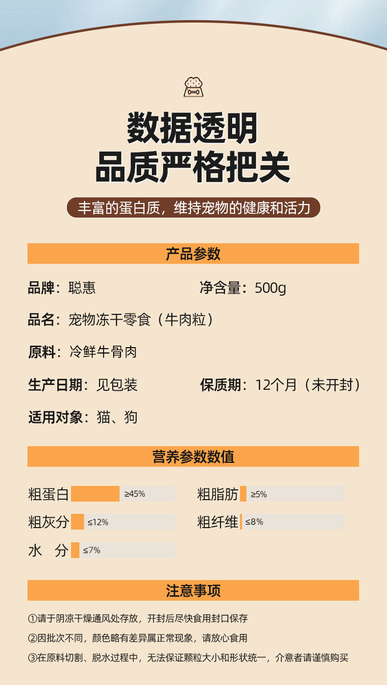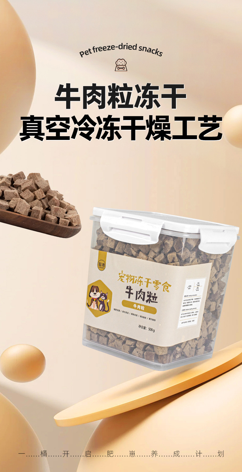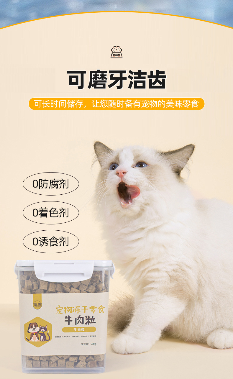 聪惠宠物零食冻干牛肉粒猫咪狗狗主食拌粮500g营养冻干桶厂家批发