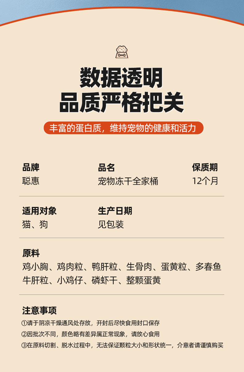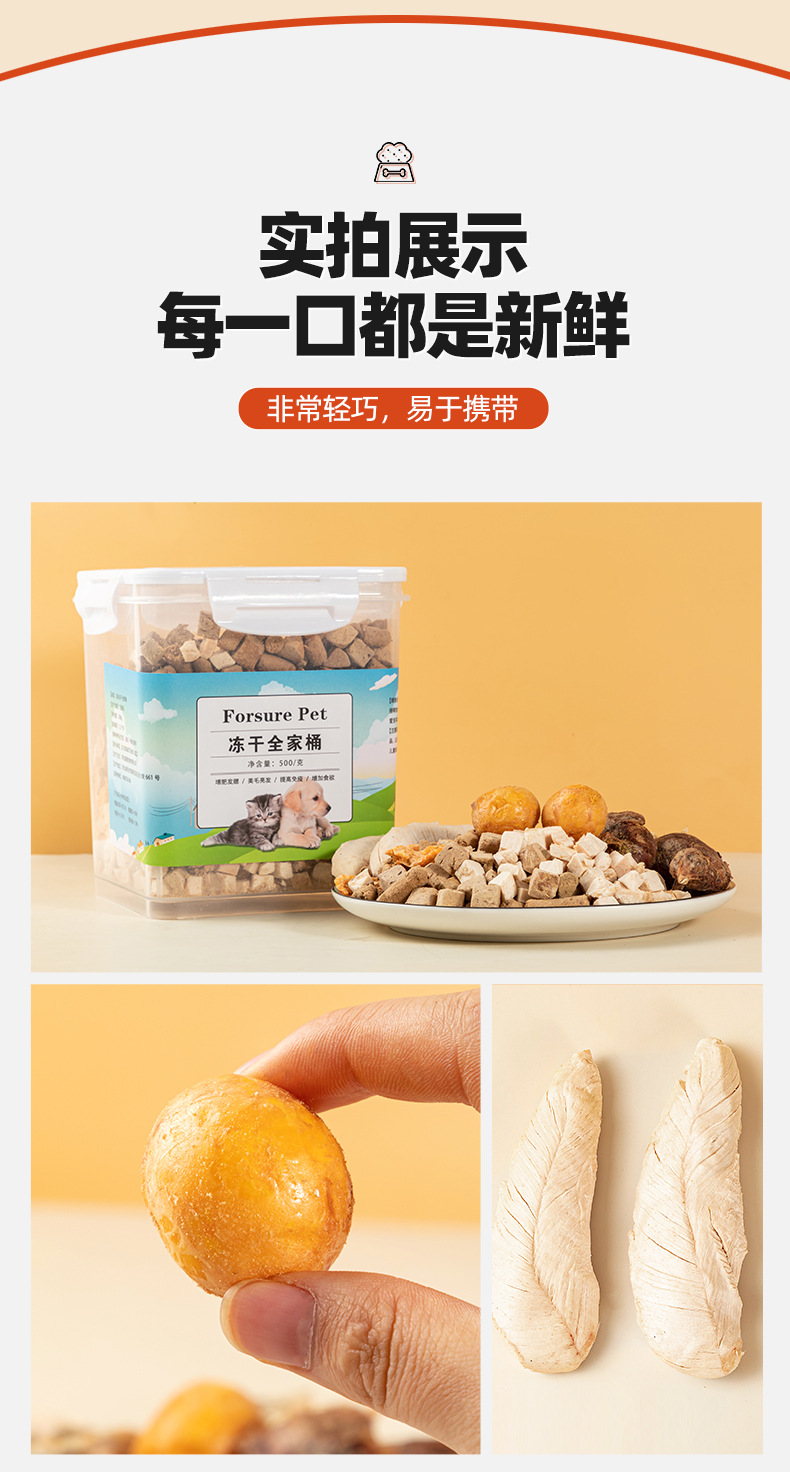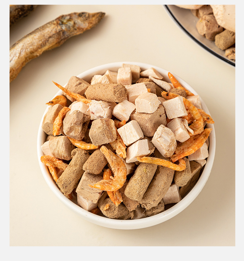 聪惠冻干混合桶装500g宠物零食猫咪冻干鸡肉粒多春鱼厂家批发包邮