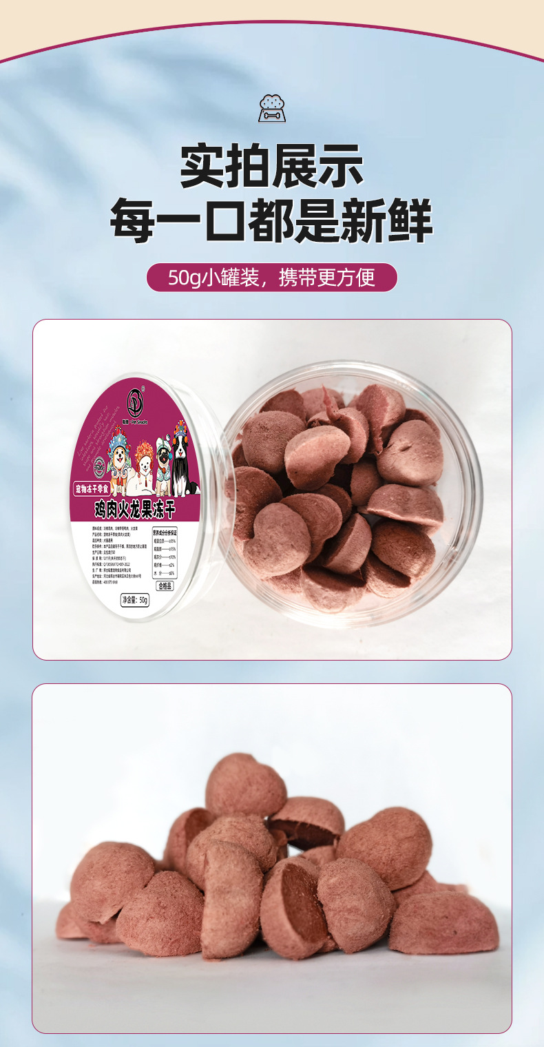 新款鸡肉火龙果冻干成幼猫狗狗磨牙洁齿营养辅食拌粮宠物零食批发