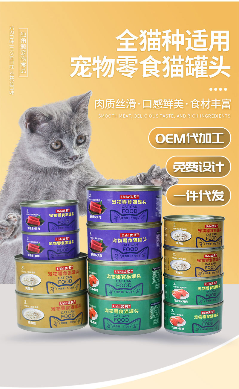 宠物零食主食猫罐头批发鸡肉奶昔羊奶三文鱼金枪鱼85g/170g加工