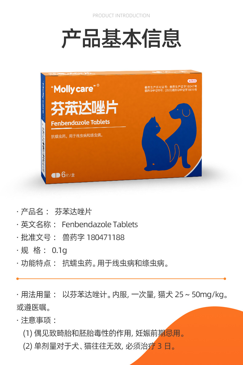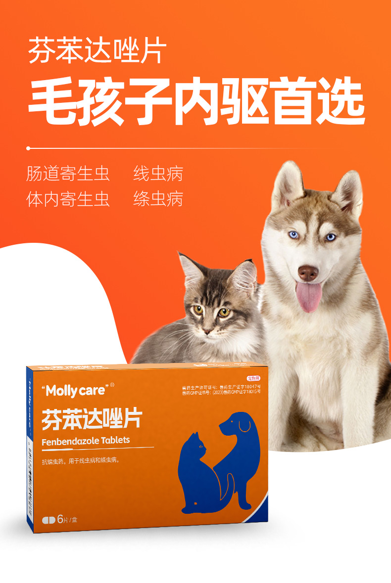 芬苯达唑片猫咪驱虫药狗狗体内驱虫蛔虫绦虫钩虫鞭虫寄生虫