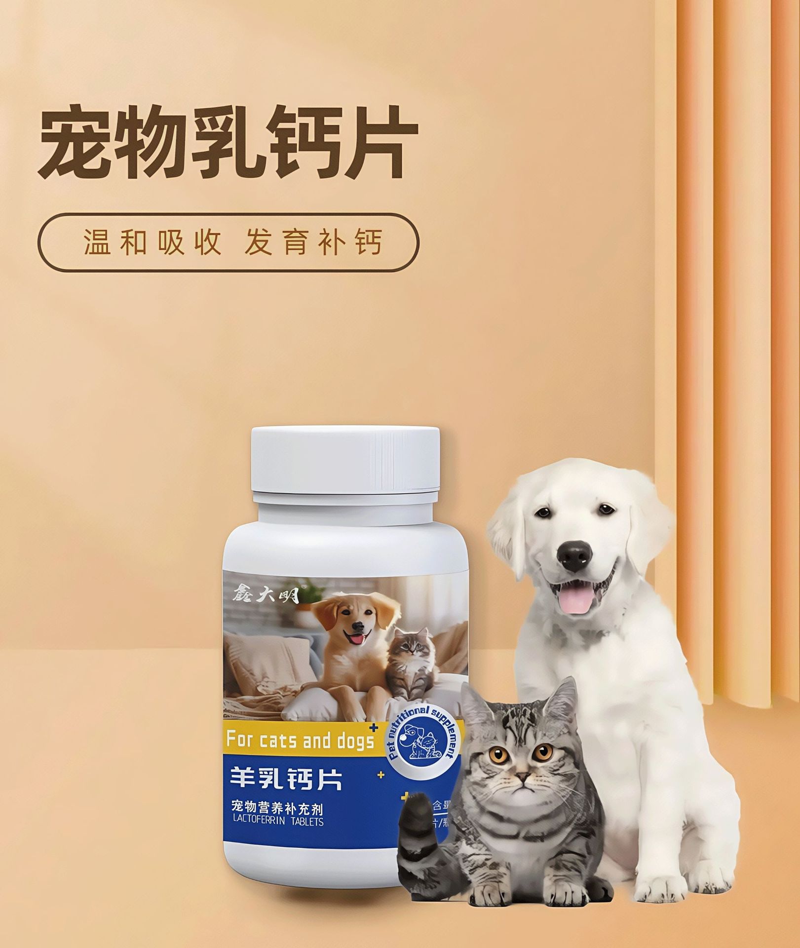 宠物钙片工厂代发猫狗通用补钙奶片狗狗补钙补充营养呵护关节发育