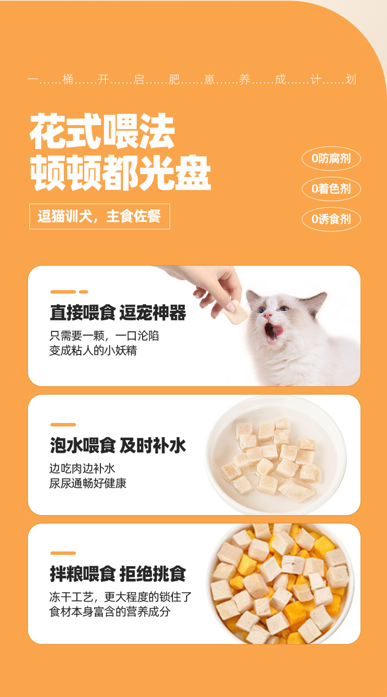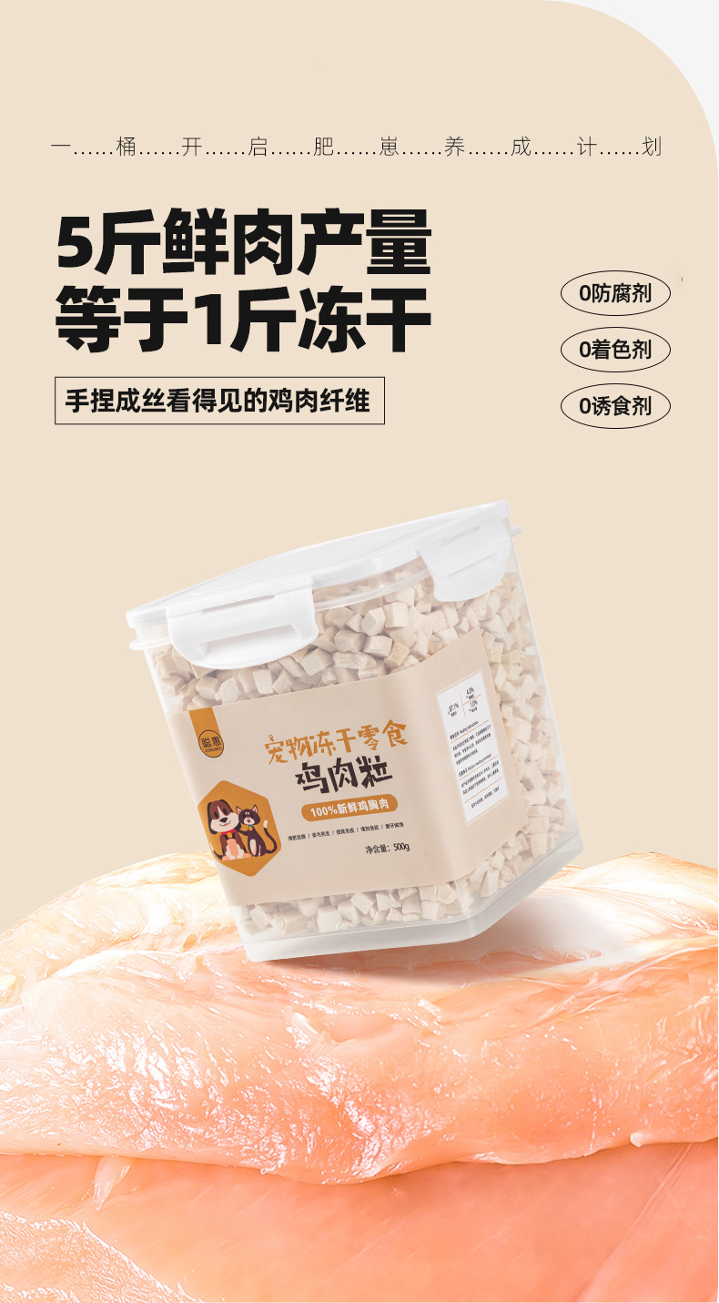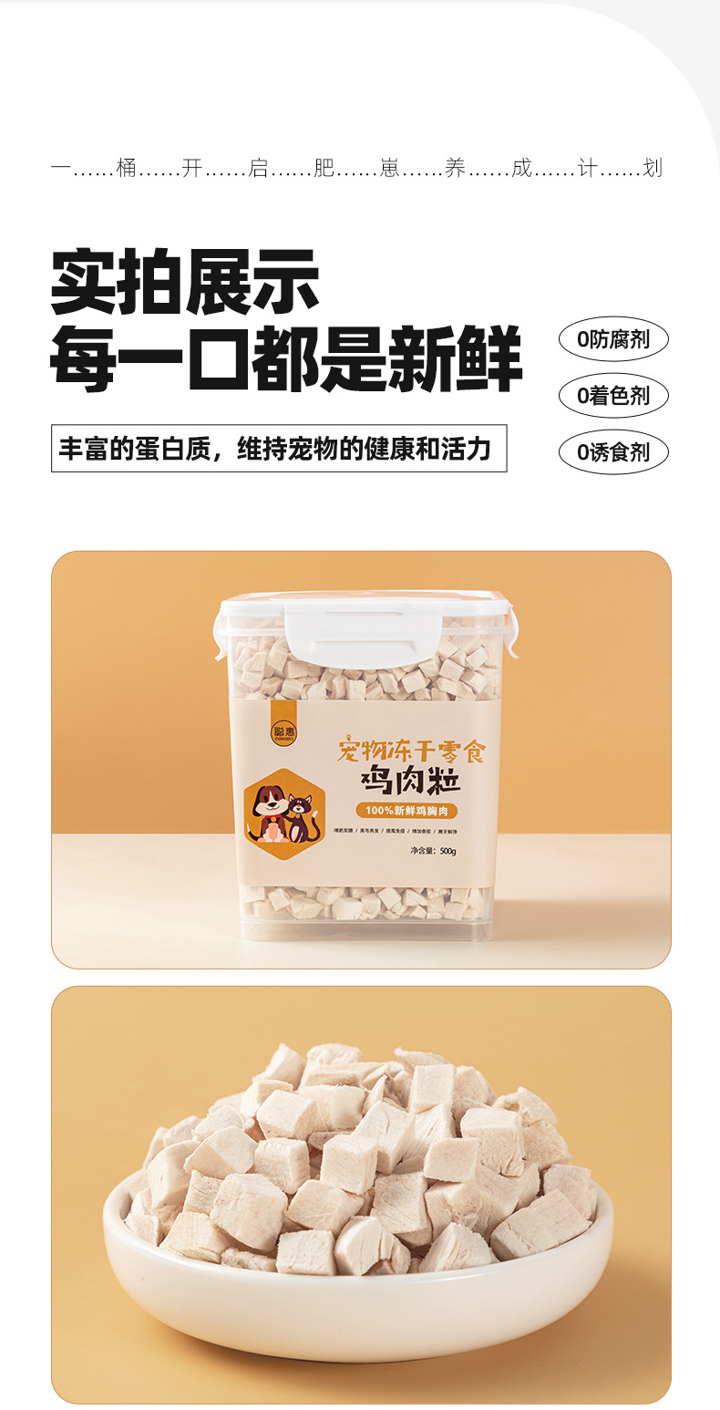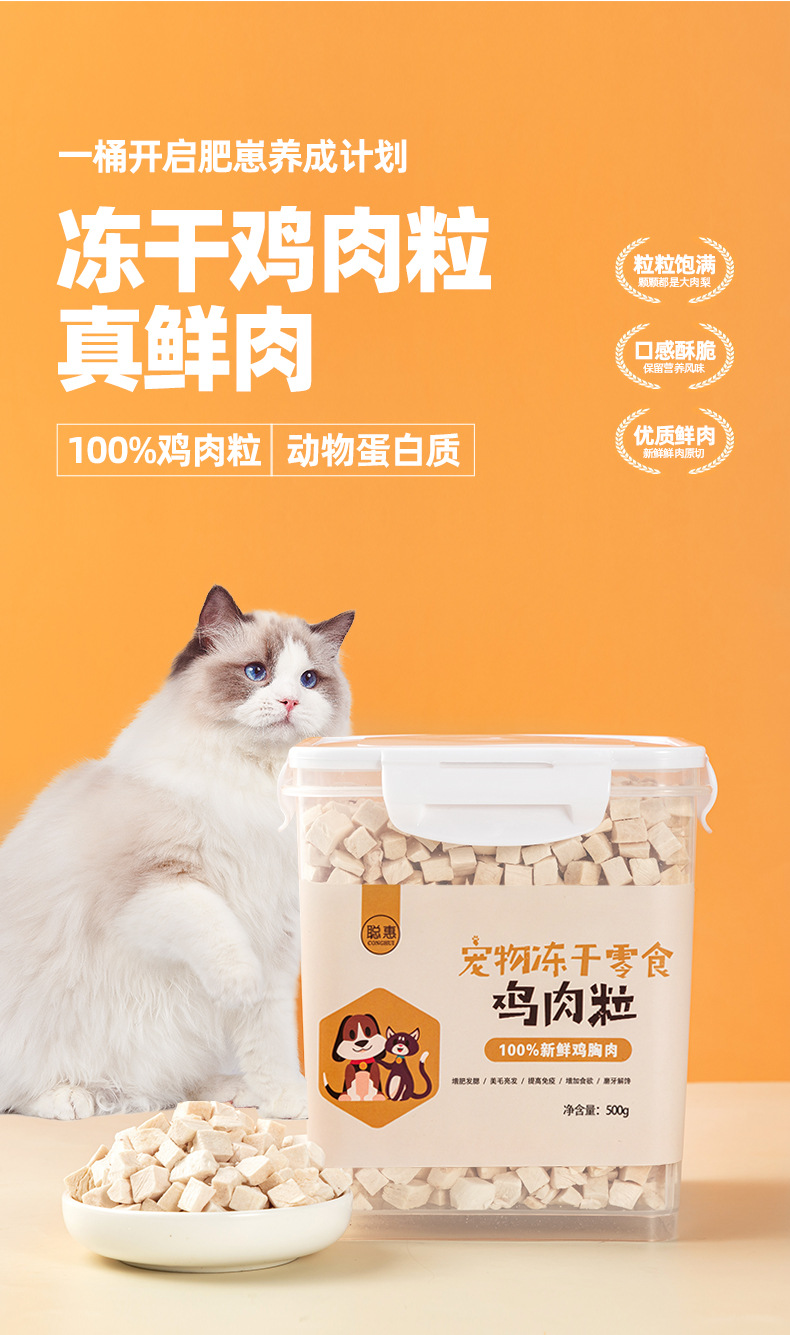 聪惠猫咪宠物食品鸡小胸冻干猫粮营养鸡肉粒冻干500g桶装狗狗零食