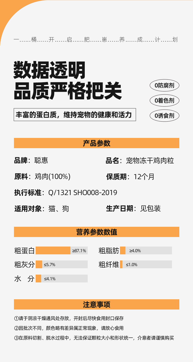 本网页所展示的有关【聪惠猫咪宠物食品鸡小胸冻干猫粮营养鸡肉粒冻干500g桶装 狗狗零食 1件_冻干宠粮_邢台聪惠宠物食品有限公司】的信息/图片/参数等由爱宠星球的会员【邢台聪惠宠物食品有限公司】提供,由爱宠星球会员【邢台聪惠宠物食品有限公司】自行对信息/图片/参数等的真实性、准确性和合法性负责,本平台(本网站)仅提供展示服务,请谨慎交易,因交易而产生的法律关系及法律纠纷由您自行协商解决,本平台(本网站)对此不承担任何责任。您在本网页可以浏览【聪惠猫咪宠物食品鸡小胸冻干猫粮营养鸡肉粒冻干500g桶装 狗狗零食 1件_冻干宠粮_邢台聪惠宠物食品有限公司】有关的信息/图片/价格等及提供【聪惠猫咪宠物食品鸡小胸冻干猫粮营养鸡肉粒冻干500g桶装 狗狗零食 1件_冻干宠粮_邢台聪惠宠物食品有限公司】的商家公司简介、联系方式等信息。